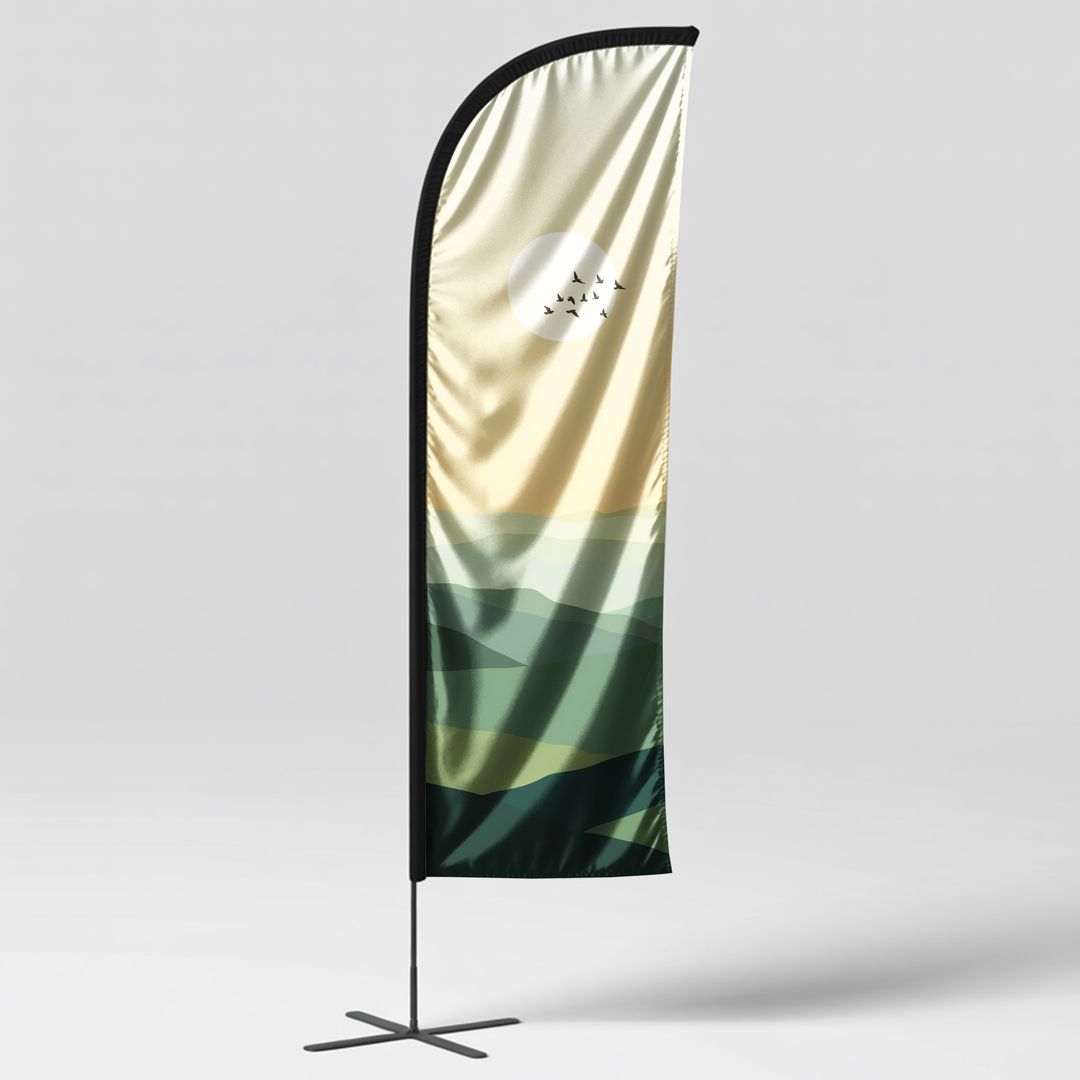 - Les drapeaux promotionnels sont montés sur un mat d’aluminium et sont conçus pour résister au vent et aux intempéries à l’extérieur.